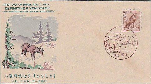 8円かもしか 27.8.1発行 宮川風景印 かもしか画