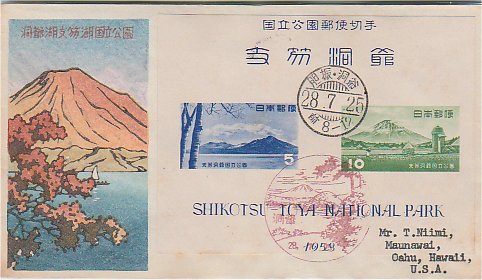 支笏洞爺s/s貼 28.7.25発行 洞爺風景、活印