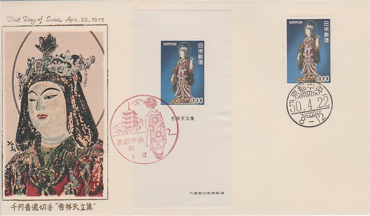 1000円吉祥天立像&s/s貼 50.4.22発行