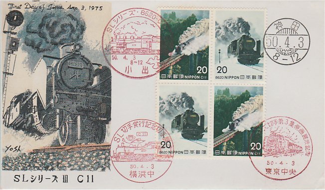 ①C55,D51連刷 49.11.26発行 門司特印、小型印