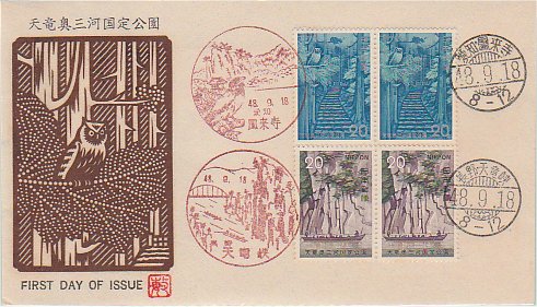 国定公園 西中国山地2種完 48.8.28発行 戸河内風景、活印、他