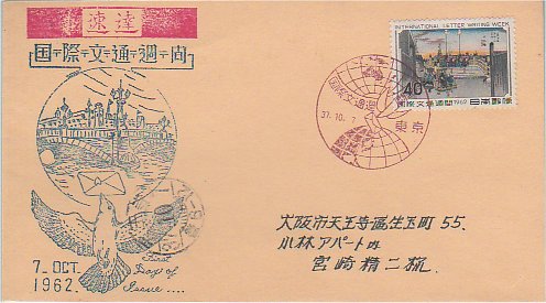 ふみの日2種完 55.7.23発行 大阪中央特印、和活印