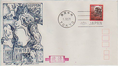 90円改色風神 46.12.1発行 東京中央機械ハト印