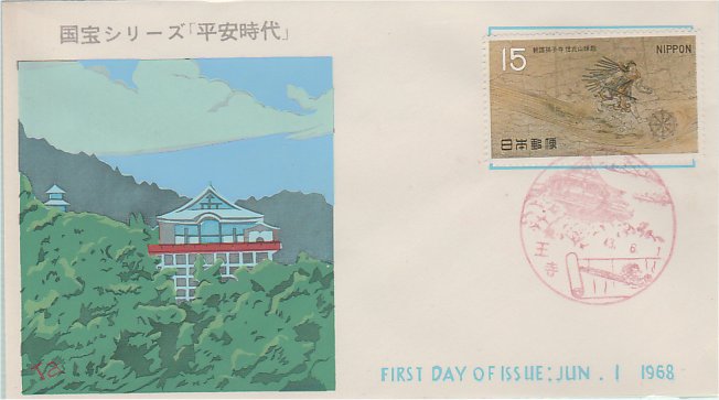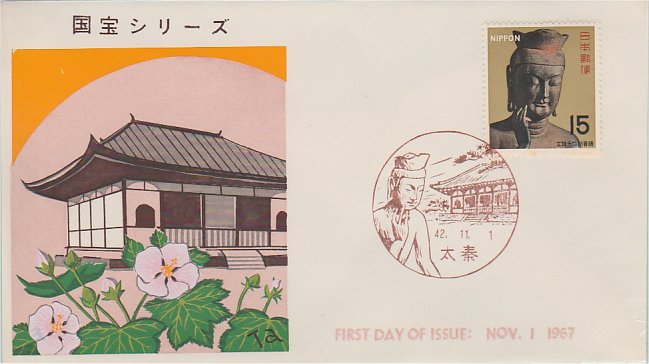 ①飛鳥時代3種完 42.11.1発行 太秦風景印/法隆寺風景印