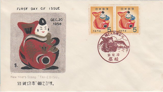 たい 41.3.25発行 広島鞆風景印 高松鯛車図