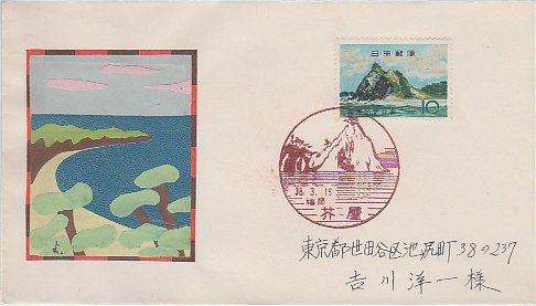 国定公園 玄海 38.3.15発行 芥屋風景印