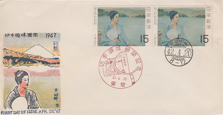 趣味週間 湖畔P貼 42.4.20発行 東京特、活印