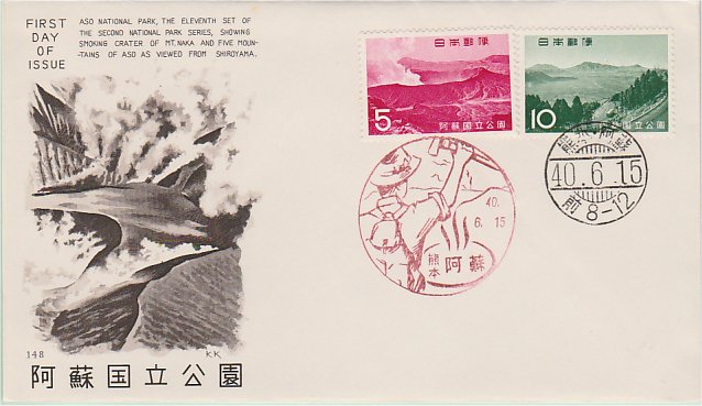 阿蘇2種完 40.6.15発行 阿蘇風景印、活印