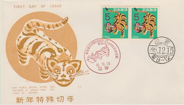 1962年 張子の虎P貼 36.12.15発行 出雲記念印・和活印
