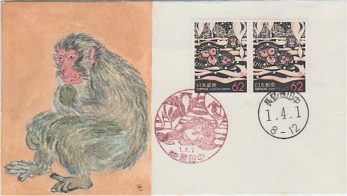 東京中央特印、活印 大分県さる原画の模写淡彩