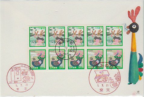 ふみの日ペーン全貼 63.7.23発行 東京特、小型、