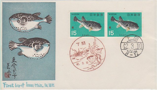⑩ とらふぐ 42.3.10発行 下関風景印
