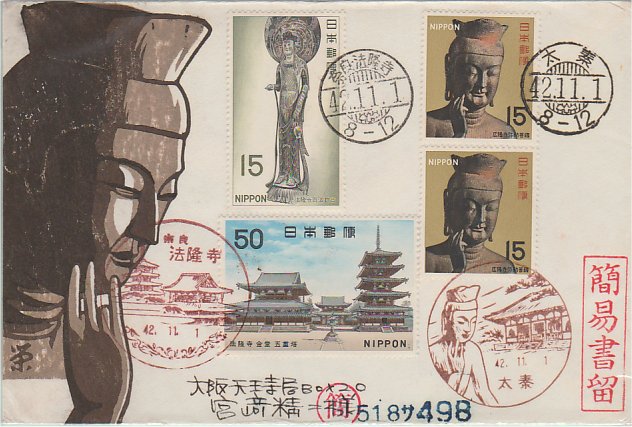 @飛鳥時代3種完 42.11.1発行 太秦活印、