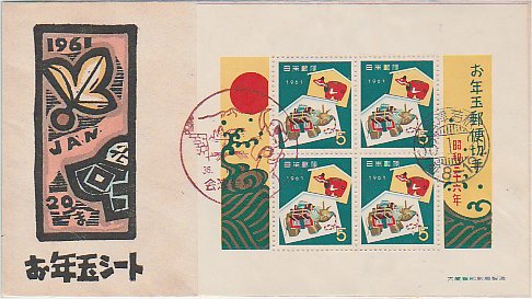 年賀 赤べこs/s貼 36.1.20発行 会津若松