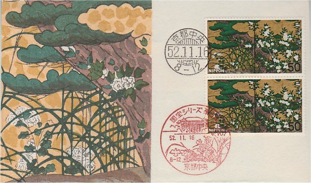花鳥図P貼 52.10.6発行 御津特、活印 5色刷