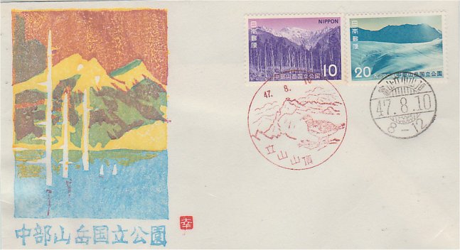 石班沢P貼 42.10.6発行 甲府特印、活印 9色刷