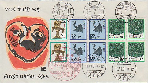 同一日に異なった趣旨の切手が発行される時、どういつ封皮に複数の切手を貼ったFDCは